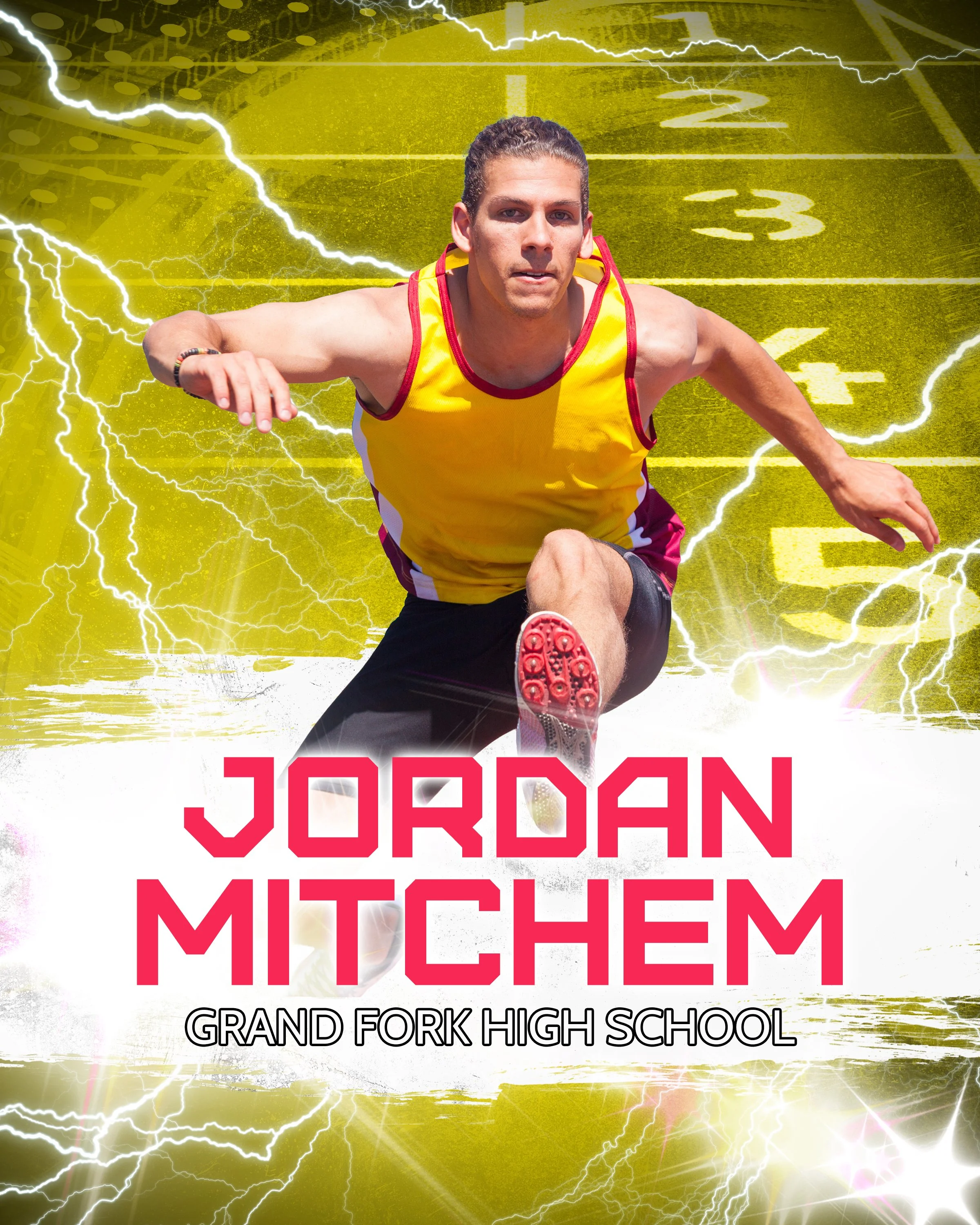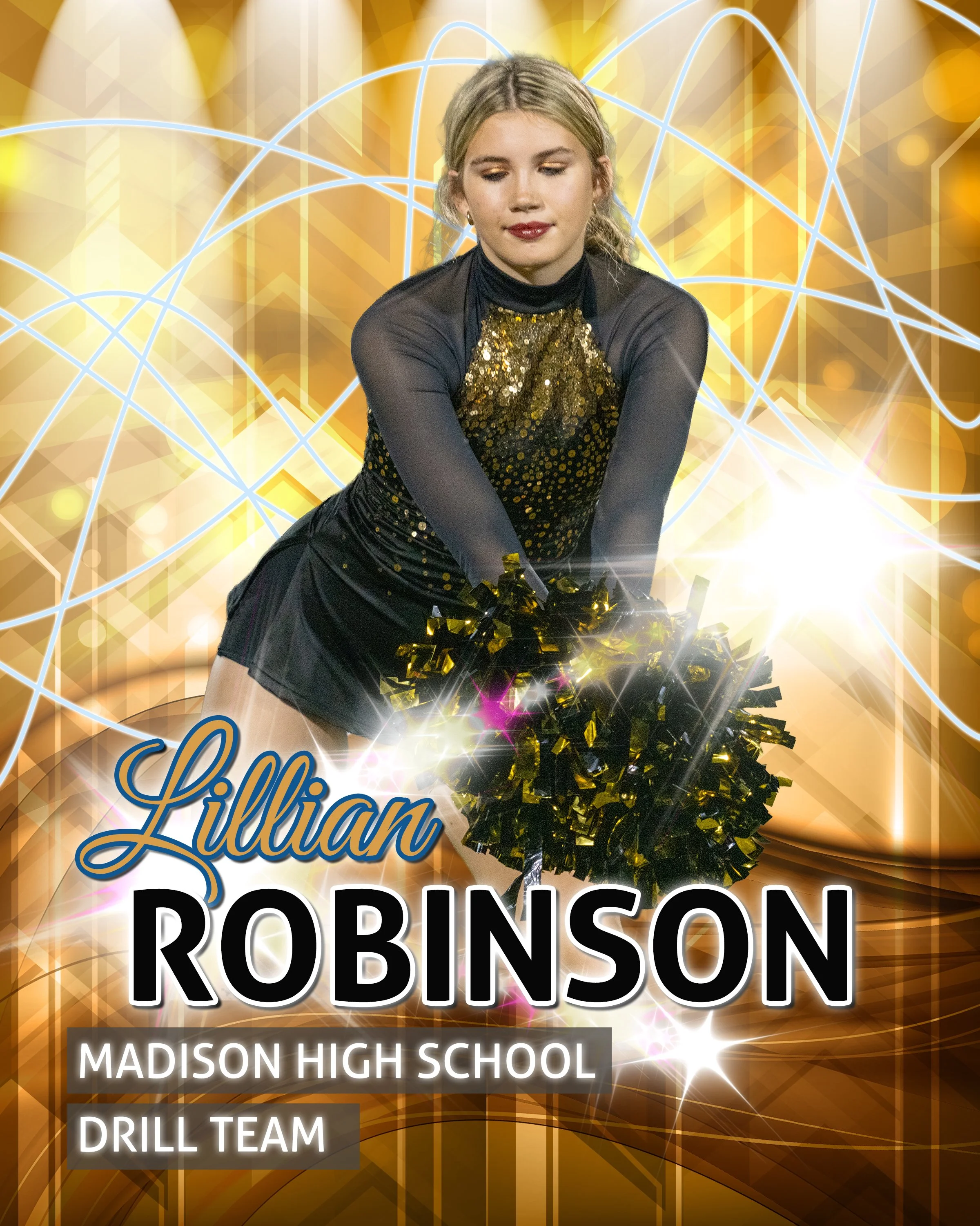 Each poster includes a custom-designed highlight graphic, tailored to reflect team or school colors, logos, or mascots creating a unique one-of-a-kind memory that your athlete will be proud to share and display.